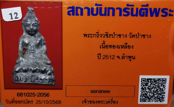 พระกริ่งวัดป่าซาง เนื้อทองเหลือง กริ่งดัง ปี2512 จ.ลำพูน + บัตรG-pra สภาพสวยเดิมค่ะ สภาพตามรูปทุกประการค่ะ