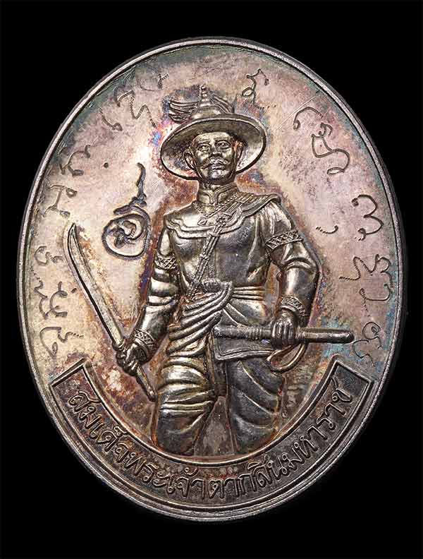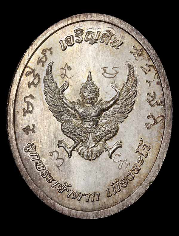 *วัดใจ* เหรียญ พระเจ้าตากสินมหาราช หลัง พญาครุฑ มีจาร เนื้อเงิน สภาพสวย