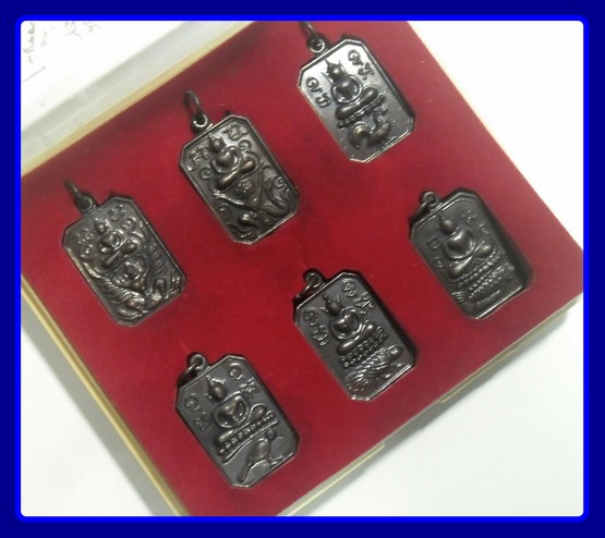 สวยมาก พร้อมกล่อง-250-เหรียญชุดประทับสัตว์ หลังยันต์เกราะเพชร ลพ.ปาน วัดบางนมโค จ.อยุธยา ลพ.รวย วัดตะโก,ลพ.เพิ่ม,ลพ.พูล ปลุกเสก พศ.2545