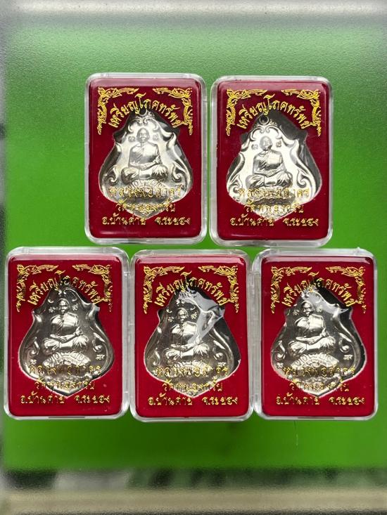 เหรียญโภคทรัพย์ สุดยอดในรุ่น โภคทรัพย์ หลวงพ่อสาครขี่เต่า สร้างปี 2552 เนื้ออัลปาก้า คัดสวย ออกวัดหนองกรับ สร้างดี พิธีชัดเจน 5 เหรียญ |