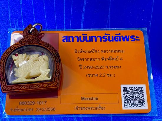 ชื่อพระเครื่อง สิงห์ งาแกะ หลวงพ่อหอม วัดชากหมาก ศิลป์นิยม ทรงเครื่อง ติดปีก คาบแก้ว สวยๆเดิมๆ