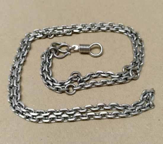 ... สร้อยสแตนเลส 'ลาย คชกริช' ... ใส่พระ 5 องค์ +ตะขอฯ ... ยาว 28.8 นิ้ว กว้าง 4 มิล. [มือ 2] ... |