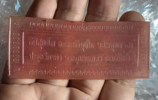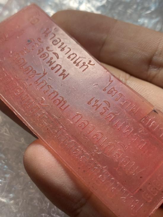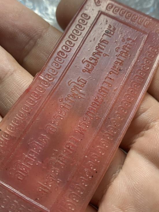 แผ่นยันต์พลาสติกแดง หลังหนังสือจีน หลวงพ่อโอภาสี อาศรมบางมด