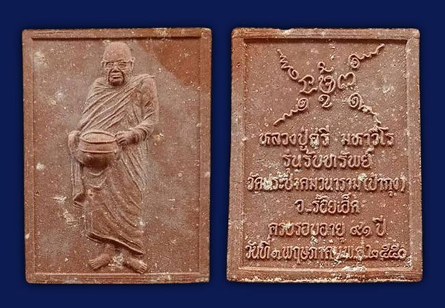 2.พระผงรูปเหมือนเนื้อแดง รุ่นรับทรัพย์ หลวงปู่ศรี วัดป่ากุง ร้อยเอ็ด ปี 2550