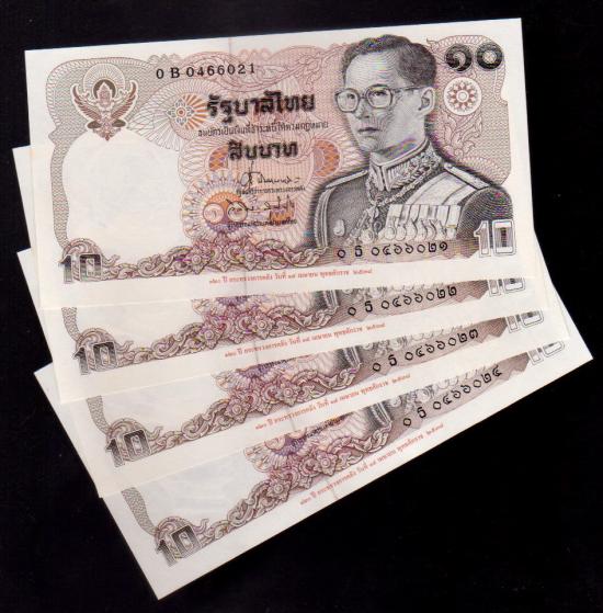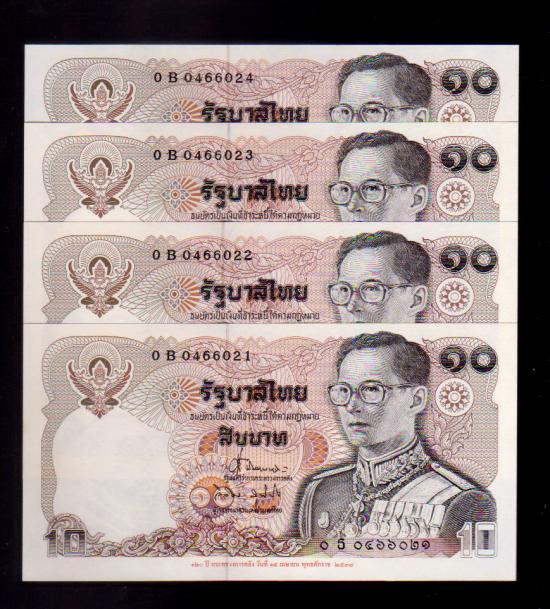 ## ธนบัตร 10 บาท ## ทรงม้า ## 120 ปี กระทรวง ## เรียงเลข 4 ฉบับ ## แกะแหนบ ## ไม่ผ่านการใช้