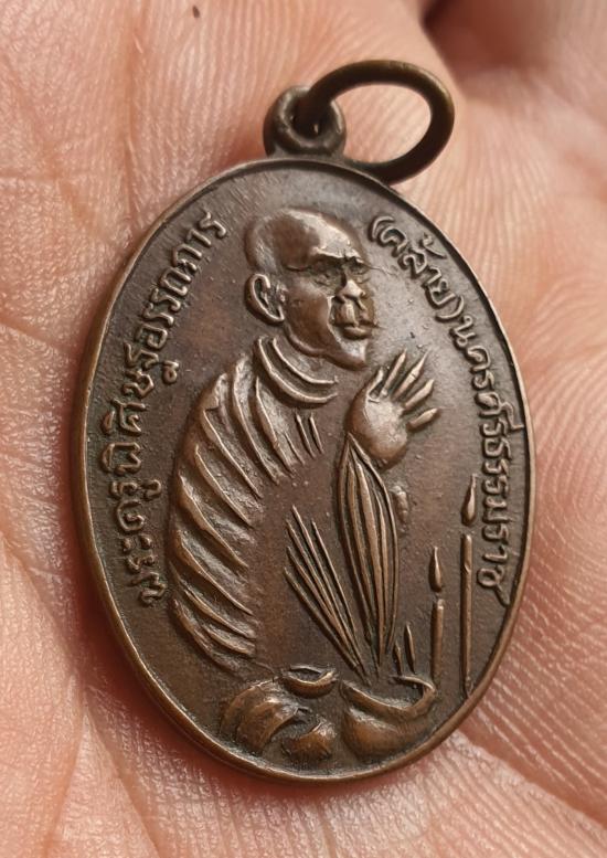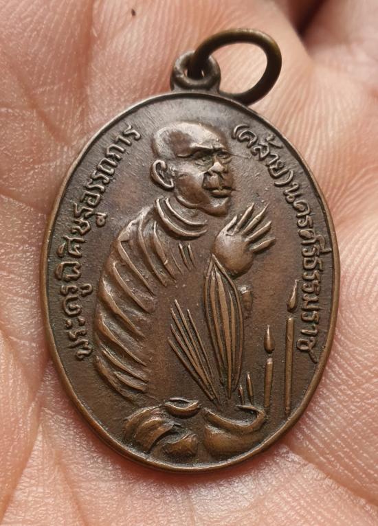 เหรียญพ่อท่านคล้ายไหว้ข้าง บล็อคตาขีด ปี2502 สภาพผิวหิ้ง ด้านหลังมีเส้นขนแมว |
