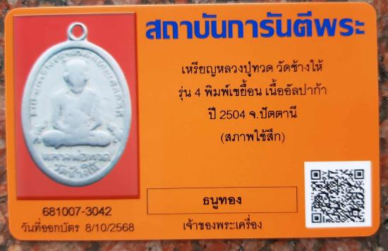 เหรียญหลวงปู่ทวด วัดช้างให้ รุ่น 4 พิมพ์เขยื้อน เนื้ออัลปาก้า ปี 2504 จ.ปัตตานี พิจารณาจากตัวตัดเรียบร้อยแล้ว พร้อมบัตรรับรองจากเวป พิจารณาให้ดีก่อนตัดสินใจนะครับ อย่าทำตัวให้เป็นขยะของสังคม ด้วยความปรารถนาดี