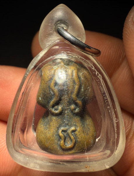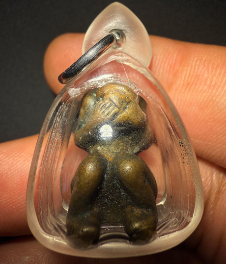 วัดใจ เคาะเดียวพระปิดตาเนื้อทองผสมพร้อมเลี่ยมทรงดอกบัวเก่าพระบ้านไม่ทราบที่เหมามา |