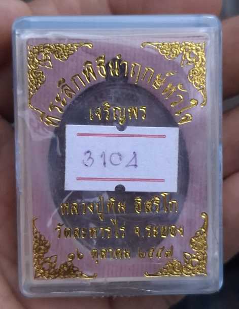 เหรียญเจริญพรบน ย้อนยุค หลวงปู่ทิม ปี57 เนื้อทองแดง กล่องเดิม บล็อกทองคำ เลข 3104 สวยๆครับ |