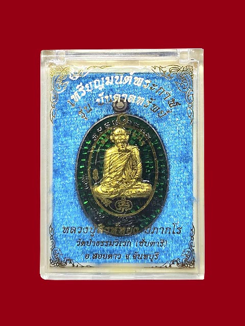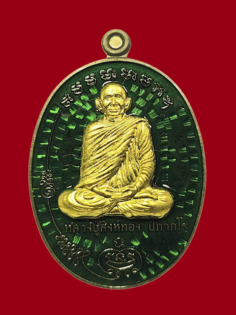 ***เหรียญมนต์พระกาฬ บันดาลทรัพย์ เนื้อชนวนลงยาสีเขียวหน้ากากปลอกลูกปืน (รายการพิเศษ) หมายเลข 261 หลวงปู่สิงห์ทอง ปภากโร วัดป่าธรรมวิเวก (ซับตารี) ปี 2559 สร้างเพียง 300 เหรียญ***