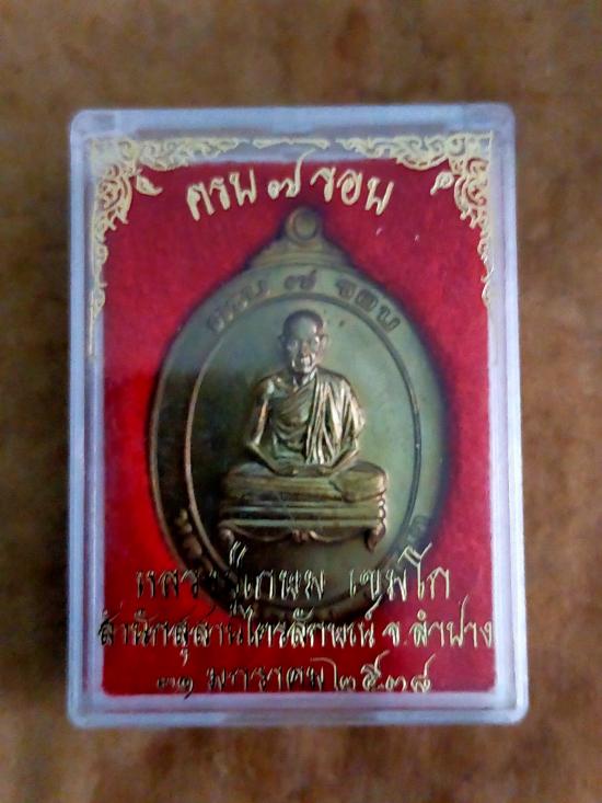 เหรียญปั้ม-แบน-พิมพ์รูปไข่ใหญ่-ไม่มีห่วง ((เนื้อทองฝาบาตร-ผิวเดิมๆ)) ล.พ.เกษม เขมโก สนส.ไตรลักษณ์ รุ่นครบ 7 รอบ ออก 31 มกราคม 2538 ((พร้อมกล่องบรรจุเดิมๆ-ใหม่-สมบูรณ์-สวยกริ๊บ)) |