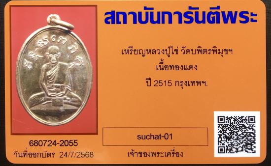 เหรียญหลวงปู่ไข่ วัดบพิตรพิมุขฯ เนื้อทองแดง ปี 2515 จ.กรุงเทพฯสภาพสวยครับพร้อมกล่องเดิม