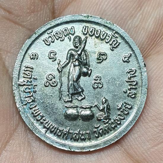 วัดใจ เหรียญขวัญถุง ของขวัญ หลวงพ่อเกษม เขมโก เนื้อกะไหล่เงิน ออกวัดต้นธงชัย จ.ลำปาง ผิวเดิมๆแห้งๆ |