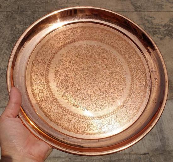 ***วัดใจ***ถาดบูชาเก่า แกะสลักเนื้อทองแดงแท้ ขนาด 12 นิ้ว มีลวดลายสลัก |