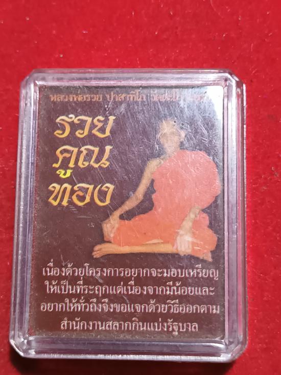 เหรียญหลวงพ่อรวย รุ่นรวยคูณทองเนื้ออัลปาก้าหน้ากากทองทิพย์ หลังตะกรุดทองคำหมายเลข1634 |