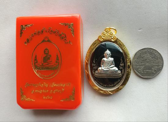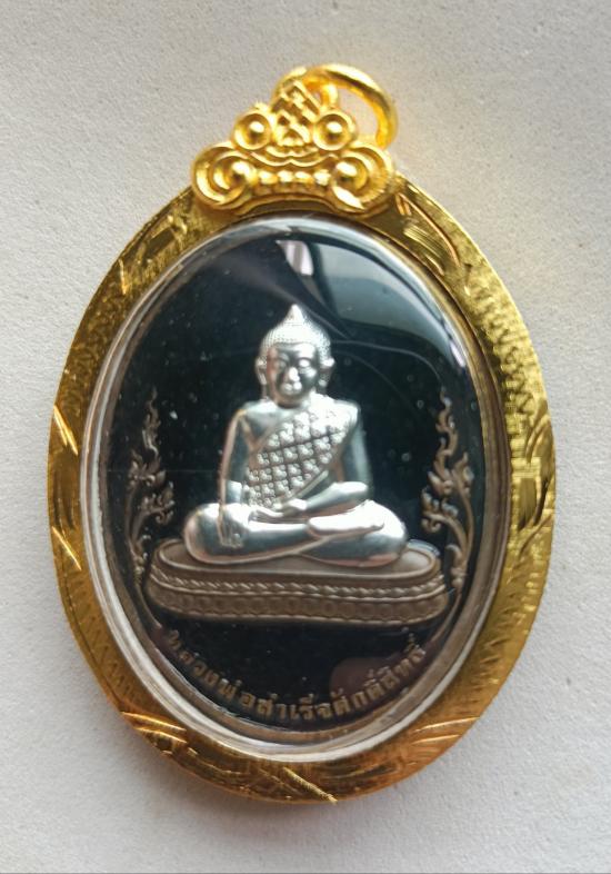 วัดใจเคาะเดียวแดงจ้า เหรียญหลวงพ่อสำเร็จศักดิ์สิทธิ์ เนื้อมหาชนวนลงยาดำหน้ากากเงิน เลี่ยมกรอบชุบทอง สร้าง19เหรียญ องค์นี้หมายเลข12 เคาะเดียวแดงจ้า |
