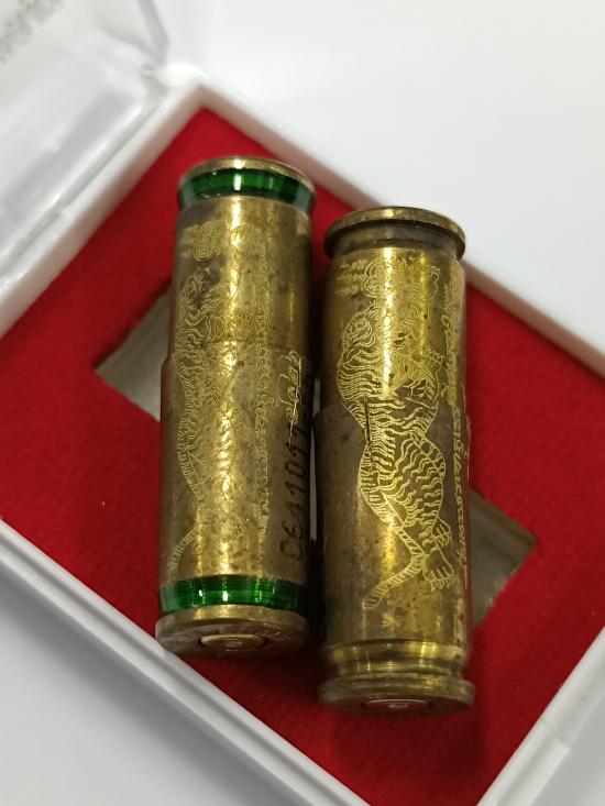 รายละเอียด @@ ตะกรุดปลอกลูกปืน รุ่น พยัคฆ์สยบไพรี รวย 100 ปี หลวงพ่อพัฒน์ วัดห้วยด้วน (ขนาดความยาว 3.5 ซ.ม.) หมายเลข 7126+12514 พร้อมกล่องครับ