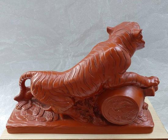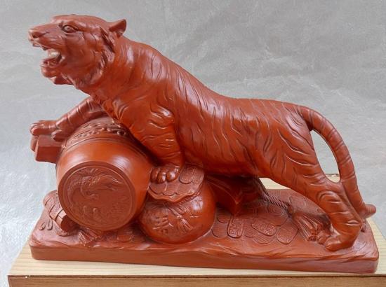 ***วัดใจ***ผ้ายันต์จากศาลเจ้าพ่อเสือ (ฮู้ตั่วเหล่าเอี๊ย) กับ "เสือเหยียบเงิน"เนื้อดินเผา ฐานกว้าง 12 สูง 8.5 นิ้ว |
