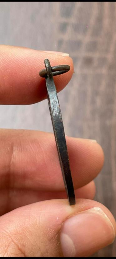 เหรียญครูบาศรีวิชัยรุ่นแรกสภาพสวยเหรียฐเป็นปั้มข้างกระบอกหนามีรอยแม่พิมร้าวในแม่พิมนิเคีบ |