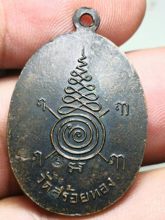 เหรียญหลวงพ่อเหลือ วัดสร้อยทอง เนื้อทองแดงรมดำ หลังตอกโค๊ตสภาพตามรูปราคาเบาๆ |