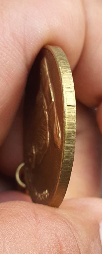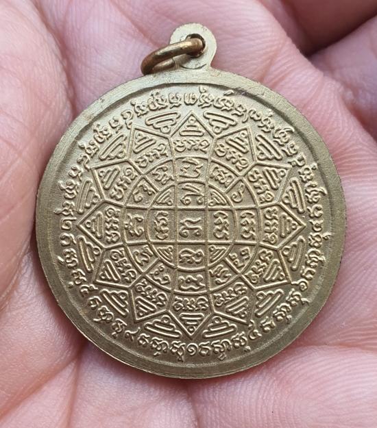 ชื่อพระเครื่อง เหรียญทองฝาบาตรย้อนยุครุ่นแรก หลวงพ่อกวย วัดโฆสิตาราม จ.ชัยนาท สร้างปี 2534 เหรียญกลมหลังยันต์มงกุฎพระพุทธเจ้า
