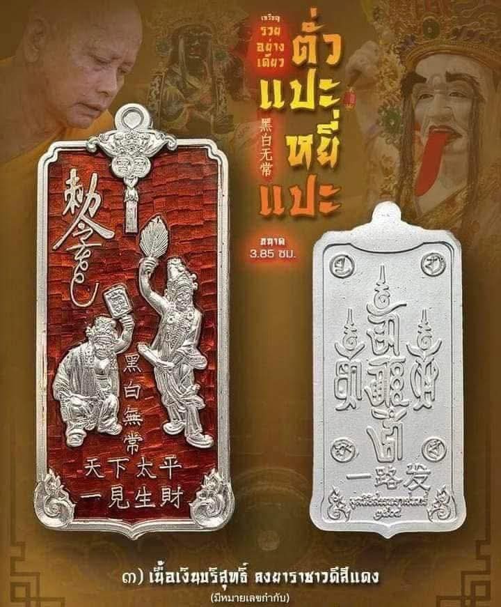 เหรียญตั๋วแปะหยี่แปะ เนื้อเงินลงยา วัดจุฬามณี ไม่แกะซีลนลุ้นเลขสวย