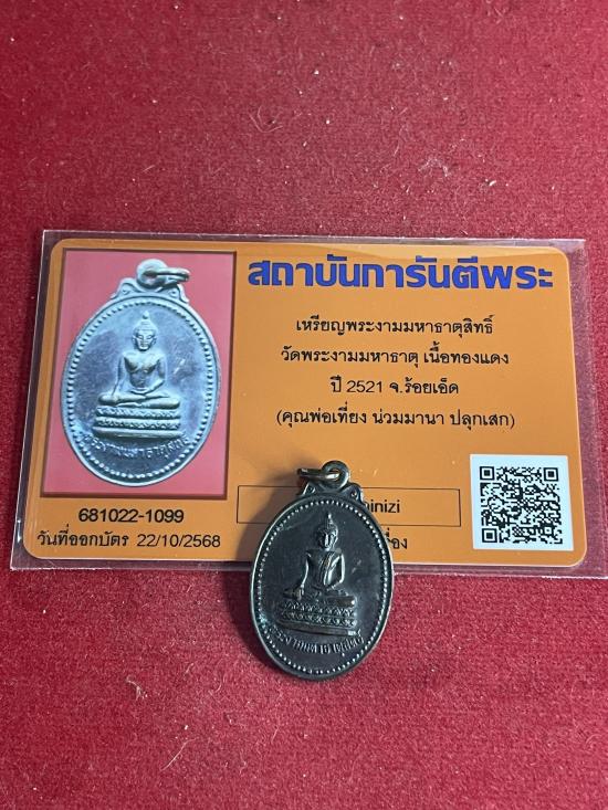 เหรียญพระงาม เนื้อทองแดง ผิวปรอท แมงทับ ปี 2521พ่อเที่ยง น่วมมานา บ้านมีดี ปลุกเสก พร้อมบัตร