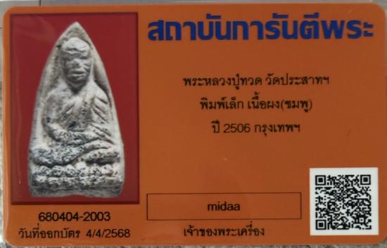 หลวงปู่ทวด วัดประสาท ปี 2506 พิมพ์เล็ก เนื้อผง (ชมพู) หน้าอาปาเช่