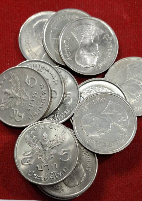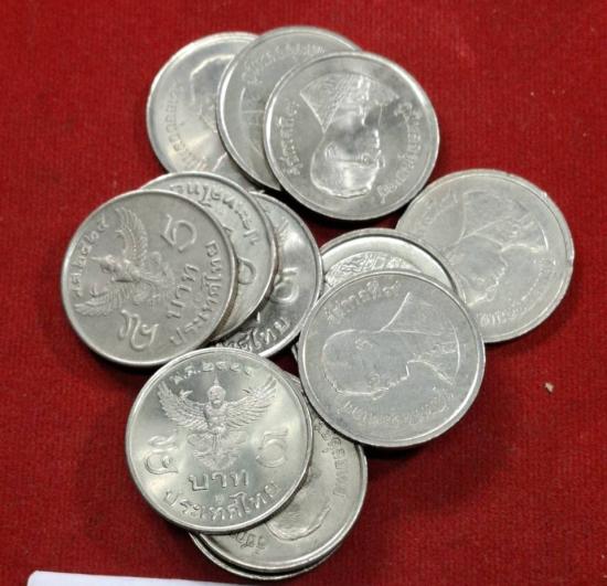 เหรียญ5บาท หลังครุฑตรง ปี2525 ไม่ผ่านใช้ เก่าเก็บ จำนวน10เหรียญ |