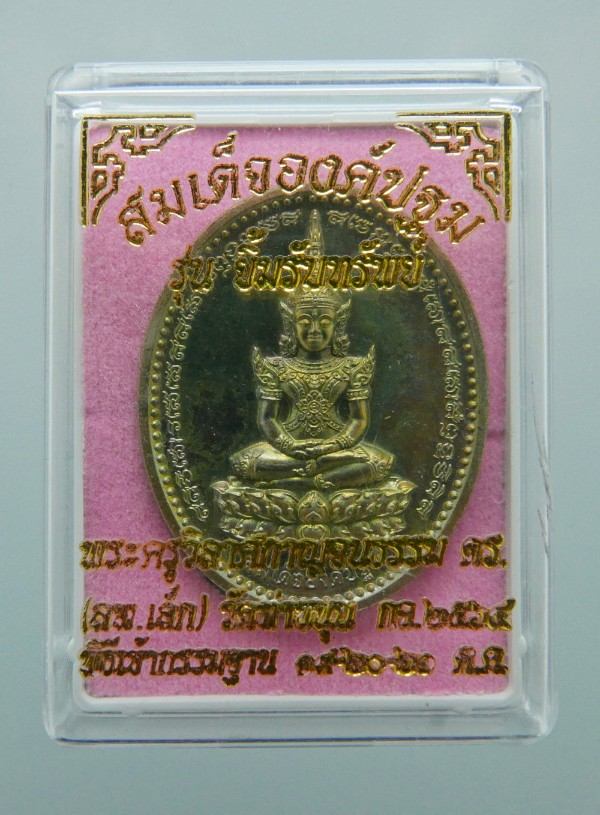 สมเด็จองค์ปฐม รุ่นยิ้มรับทรัพย์ เนื้อเขียวเหล็กไหล พิมพ์ใหญ่ หลวงพ่อเล็ก วัดท่าขนุน เลข 3877 |