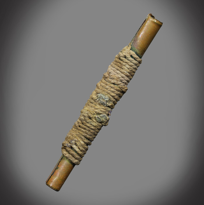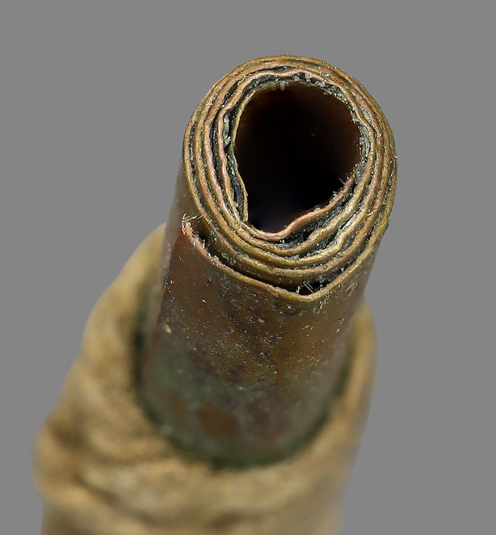 (เริ่มที่200)ดอกที่ 2 ตะกรุดสาริกา (ไม่ทราบที่) เนื้อทองแดง ถักเชือกเก่ามีอายุ ขนาดตะกรุดยาว 1.6 นิ้ว |