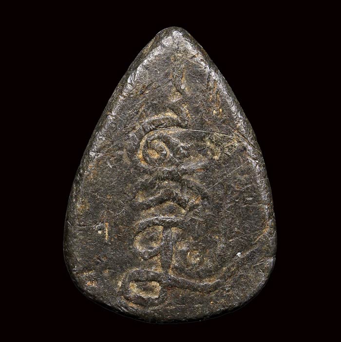 (เริ่มที่200)เหรียญหล่อโบราณ พิมพ์หยดน้ำ หละงยันต์ เนื้อตะกั่วเก่า(ไม่ทราบที่) ขนาด ฐาน 1.9 cm สูง 2.7 cm |