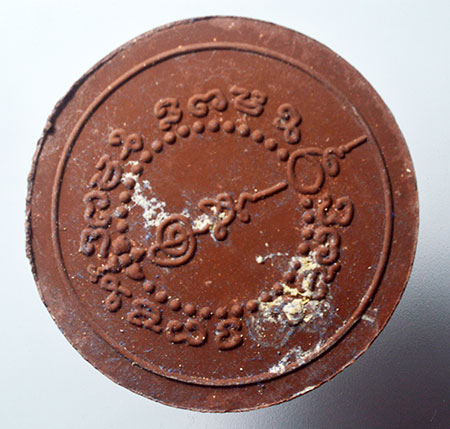 พระผงสุริยันต์ จันทรา รุ่น 2 ปี 49 ท่านสรรเพชร จัดสร้าง รูปแบบย้อนยุค พิมพ์ 4 เซน เนื้อผงว่านแดง หลัง ยันต์เอียง |