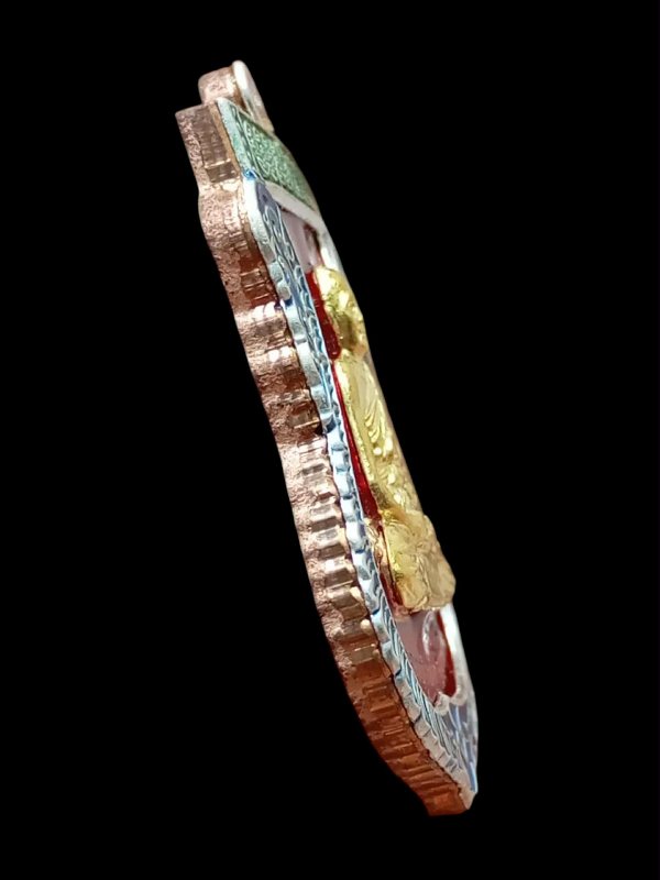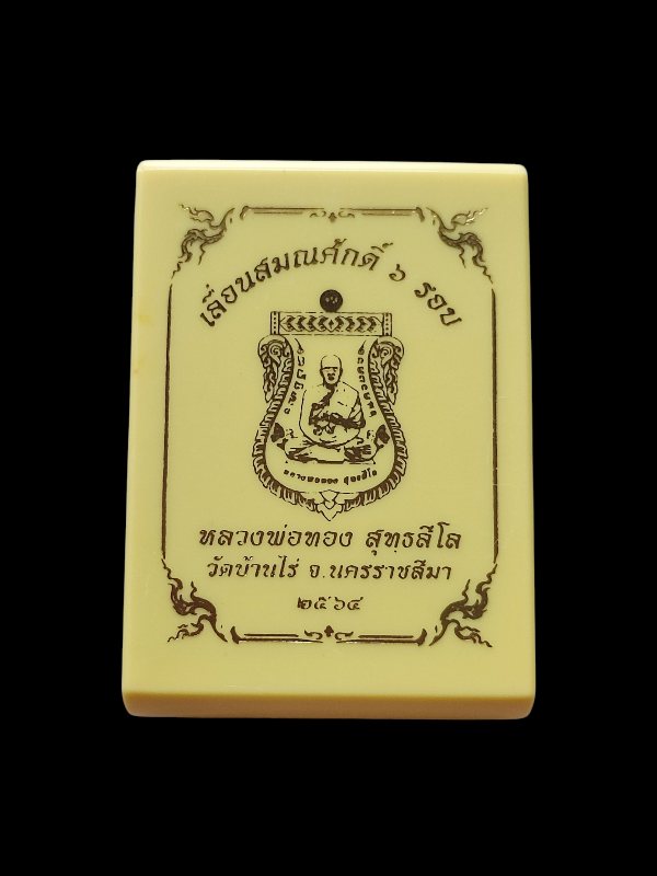 เหรียญเลื่อนสมณศักดิ์ 6 รอบ หลวงพ่อทอง วัดบ้านไร่ เนื้อนวะหน้ากากทองคำขอบเงินลงยา