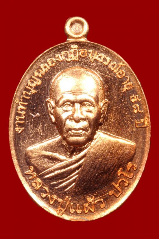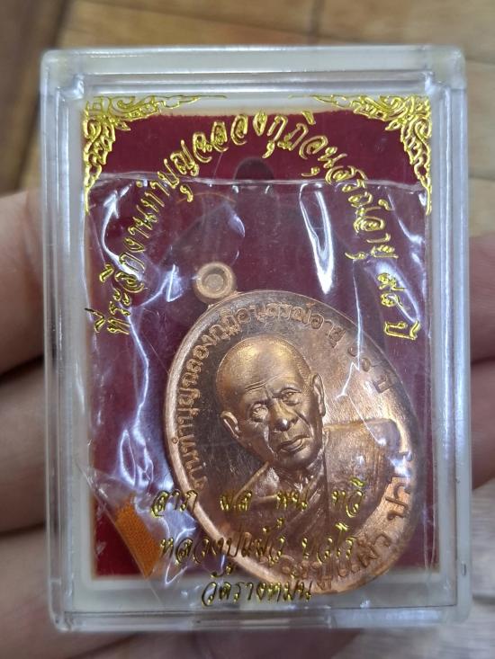 หลวงปู่แผ้ว ปวโร วัดรางหมัน ฉลองกุฏิ ลาภผลพูนทวี อาย 98 ปี เนื้อทองแดง กล่องเดิม |