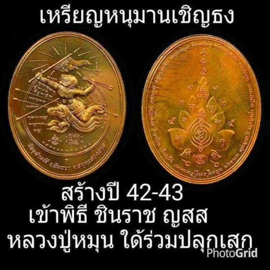 เหรียญหนุมานเชิญธง วัดจุฬามณี หลวงปู่หมุนร่วมปลุกเสก พิธี ญสส.ปี2542 พร้อมเลี่ยม |