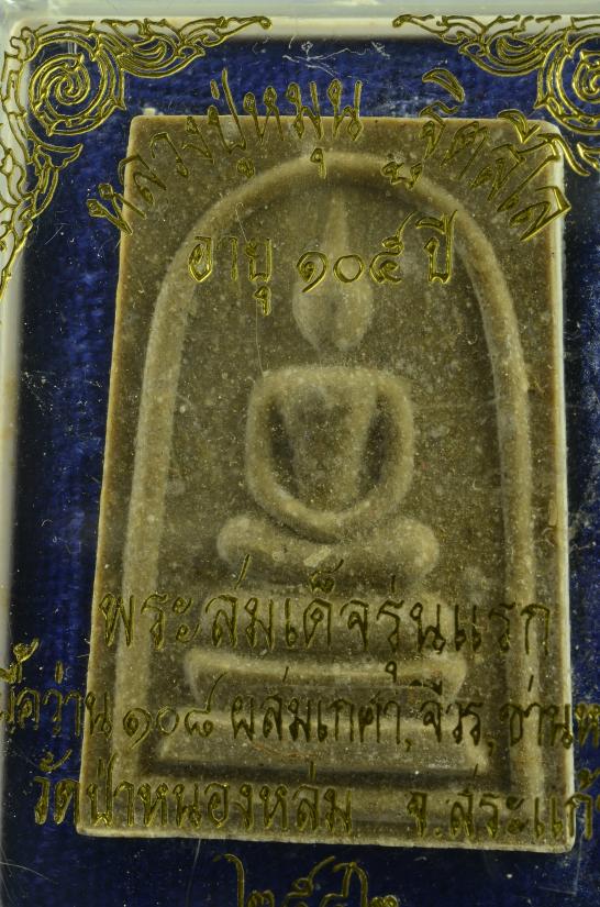 พระสมเด็จรุ่นแรก หลวงปู่หมุน ฐิตสีโล พิธีเจริญลาภ ปี 2542 หลังปั๊มยันต์แดง เนื้อว่านน108 ผสมเกศา จีวร ชานหมาก |