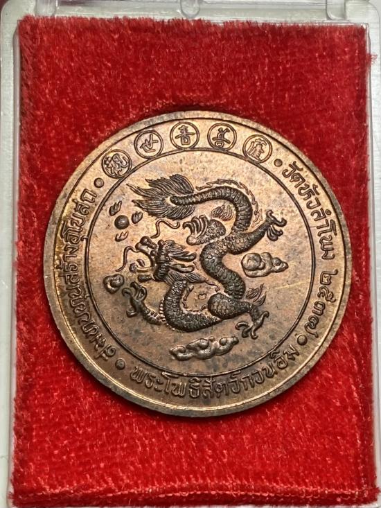 เหรียญเจ้าแม่กวนอิม หลังมังกร วัดหัวลำโพง ปี 2537 เนื้อทองแดงผิวไฟ พร้อมกล่องเดิม