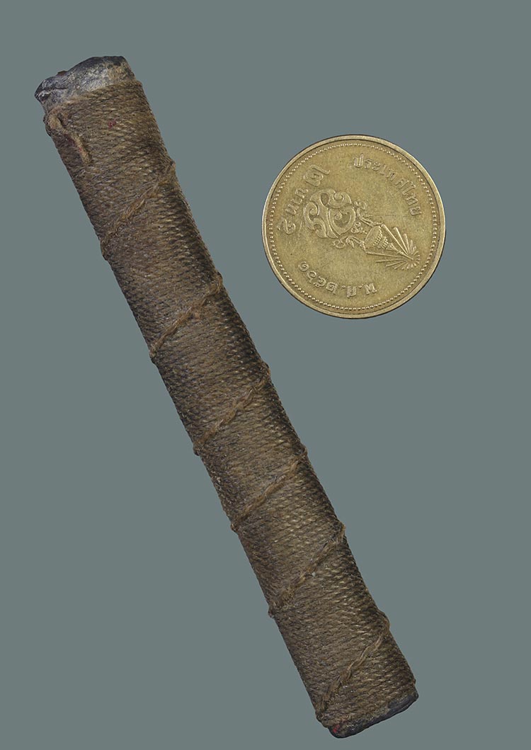 วัดใจ**เครื่องราง ตะกรุดถักเชือกเนื้อสองกษัตริย์ ตะกั่ว+ทองแดงเก่า หลวงปู่สุข วัดโพธิ์ทรายทอง ขนาด 3.นิ้ว หายาก...ตามสภาพครับ