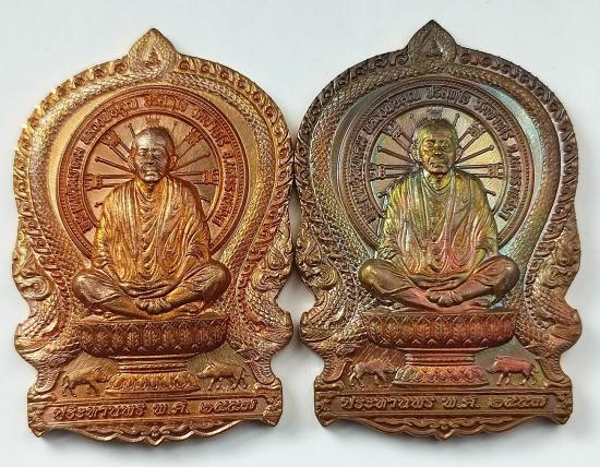 (จัดชุดคู่) เหรียญนั่งพาน "ประทานพร" หลวงพ่อคูณ วัดบ้านไร่ ปี57 เนื้อทองแดงผิวไฟ+ทองแดงมันปู เบอร์ 2143+1626 พร้อมกล่องเดิมครับ (เหรียญจริงสวย) (B)
