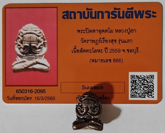พระปิดตาอุตตโม รุ่นแรก หลวงปู่ฮก วัดมาบลำบิด เนื้อสัตตะโลหะ เพื่อบูรณะวัดเขาซก ปลุกเสก 6 มีนาคม 2559 เลข866 |