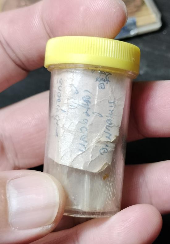 ชื่อพระเครื่อง เหมาพระบ้านมา น่าจะเป็นแท่งผงอัฐิ หลวงปู่หล้า วัดภูจ้อก้อ จ.มุกดาหาร พระป่ากรรมฐานสายพระอาจารย์มั่น เก็บใส่ไว้ในซอง ใส่ไว้ในขวดพลาสติกเก่าอีกที ท่านใดสนใจเก็บสะสมบูชาไว้เป็นศิริมงคล เคาะเดียวแดง