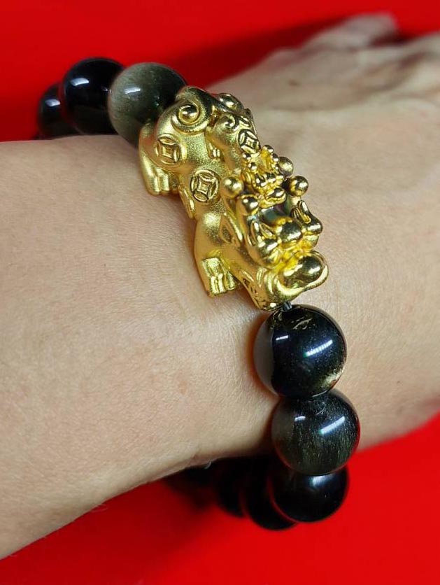***วัดใจ***สร้อยข้อมือปี่เซี๊ยะเงินแท้ชุบทอง (ตัวใหญ่) หินสะท้อนแสง หินนำโชค13 มิล |