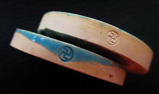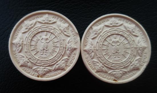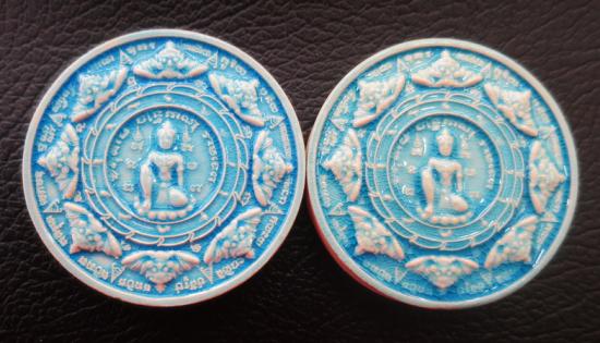 พระอุดมโชค ปฐมกษัตริย์ เนื้อกระเบื้องเคลือบฟ้า ขนาด 5 ซ.ม. จำนวน 2 องค์ ด้านหลังมีสะกิดครับ |