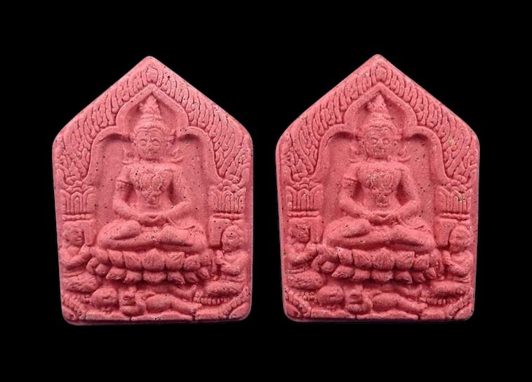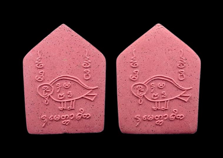ชื่อพระเครื่อง วัดใจ 2องค์ ขุนแผนสาริกา มหาเสน่ห์ อาจารย์ประคอง รุ่นเจริญ เนื้อชมพู ใต้ฐานตอกโค๊ต รุ่นนี้ผสมผงพรายกุมาร หลวงปู่ทิม วัดละหารไร่