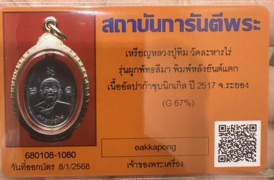 เหรียญผูกพัทธสีมา พิมพ์หลังยันต์แตก มาพร้อมตลับทอง 67% ผ่านการประกวดงานเชียงใหม่ล่าสุดได้รางวัลที่ 3 มีบัตรการันตีพระ