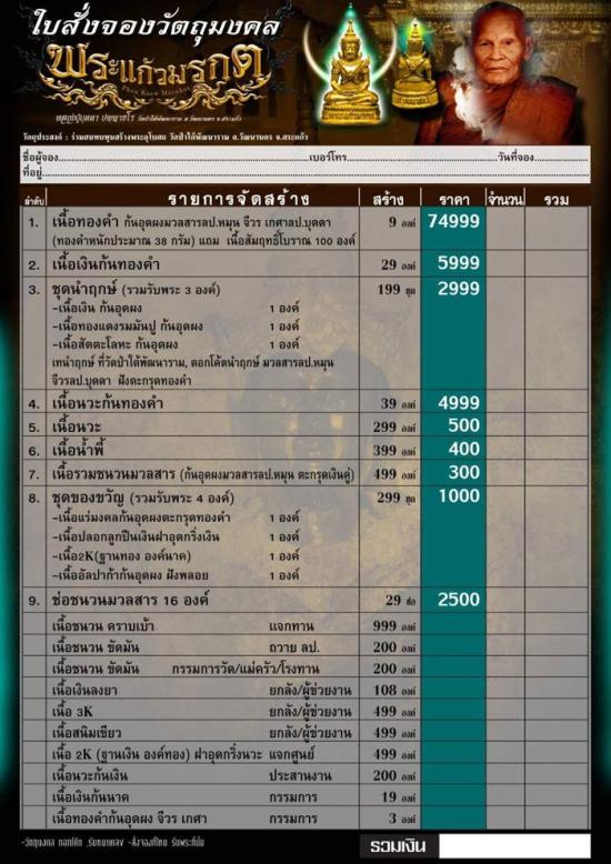 อ๊อฟชั่นเยอะมาก ติดจีวร สายสินจ์ แผ่นเงินหมายเลข