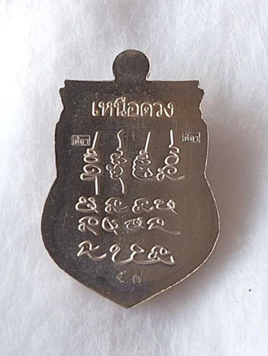 เหรียญพระราหูอมจันทร์ หลวงปู่ศิลา เมตตาอธิษฐานจิต รุ่นเหนือดวง เนื้ออัลปาก้าลงยา เลข2หลัก No.57 |