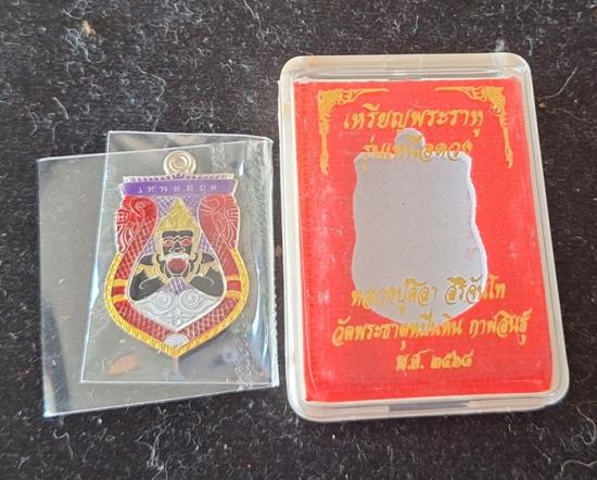 เหรียญพระราหูอมจันทร์ รุ่นเหนือดวง เนื้ออัลปาก้าลงยา ตอกเลข+ตอกโค๊ต พร้อมกล่อง |
