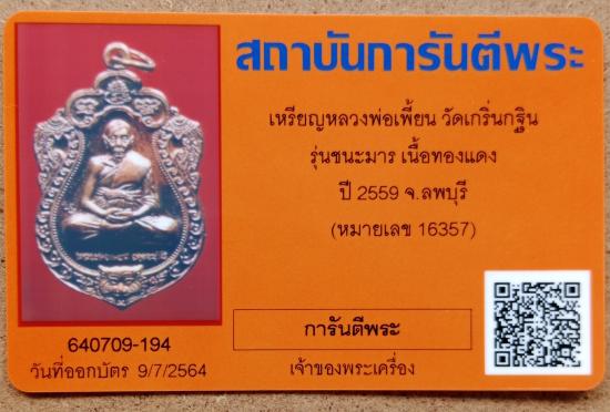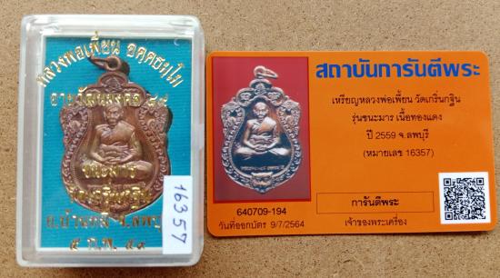 เหรียญหลวงพ่อเพี้ยน วัดเกริ่นกฐิน จ.ลพบุรี ปี2559 รุ่นชนะมาร เนื้อทองแดง หมายเลข กล่องเดิม พร้อมบัตรรับรอง ตามรูปครับ